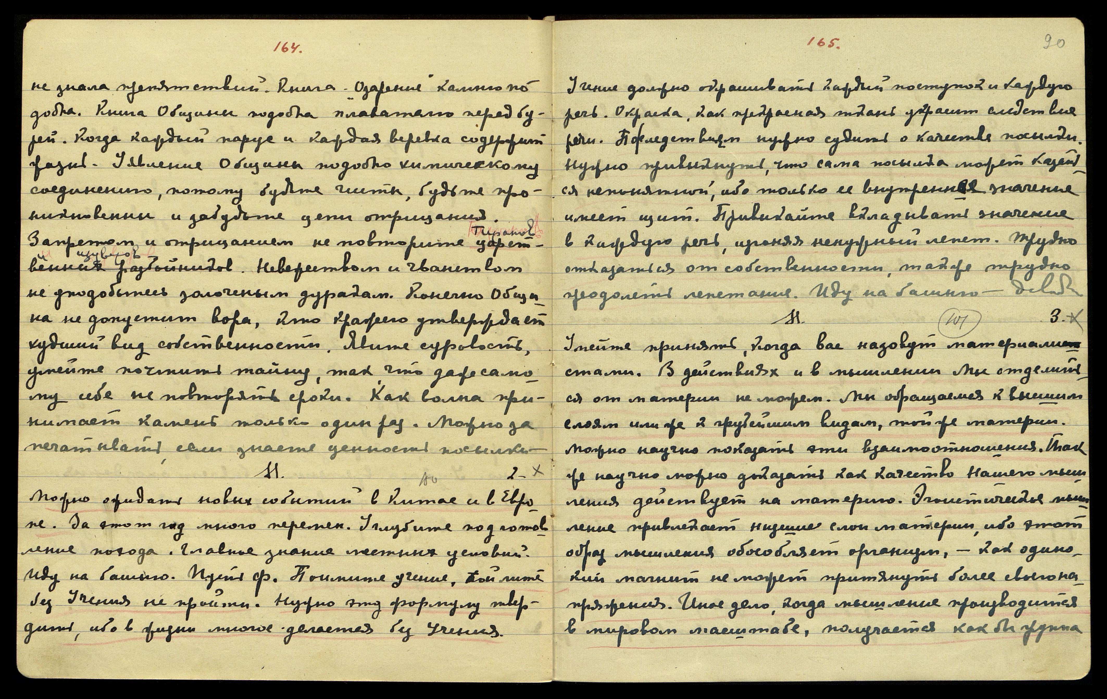 Весною можно ожидать событий — сложность большая. Удумаю путь на Т[ибет]. Удумаю путь на Т[ибет]. Удумаю путь на Т[ибет]. Теперь главное подготовить путь. Много головотяпов кругом. Надо начинать работу. Удивляются. Чуют особое направление. Решаем суровые меры. Коллективизм и диалективизм — два пособия при мышлении о материализме. Существо материализма являет особую подвижность, не минуя ни одного явления жизни. Учитель являет лишь вехи нужные. Можно развивать положения, мысля сказанными путями. Нужно до такой степени обосновать материализм, чтоб все научные достижения современности могли войти конструктивно в понятие материализма. Мы говорим об астральных телах, о магнитах, о свечении ауры, об излучении каждого предмета, о перемещении чувствительности, об изменении весомости, о проникновении одного слоя материи через другой, о посылках мысли через пространство, о чувстве центров, о понимании слова ма-