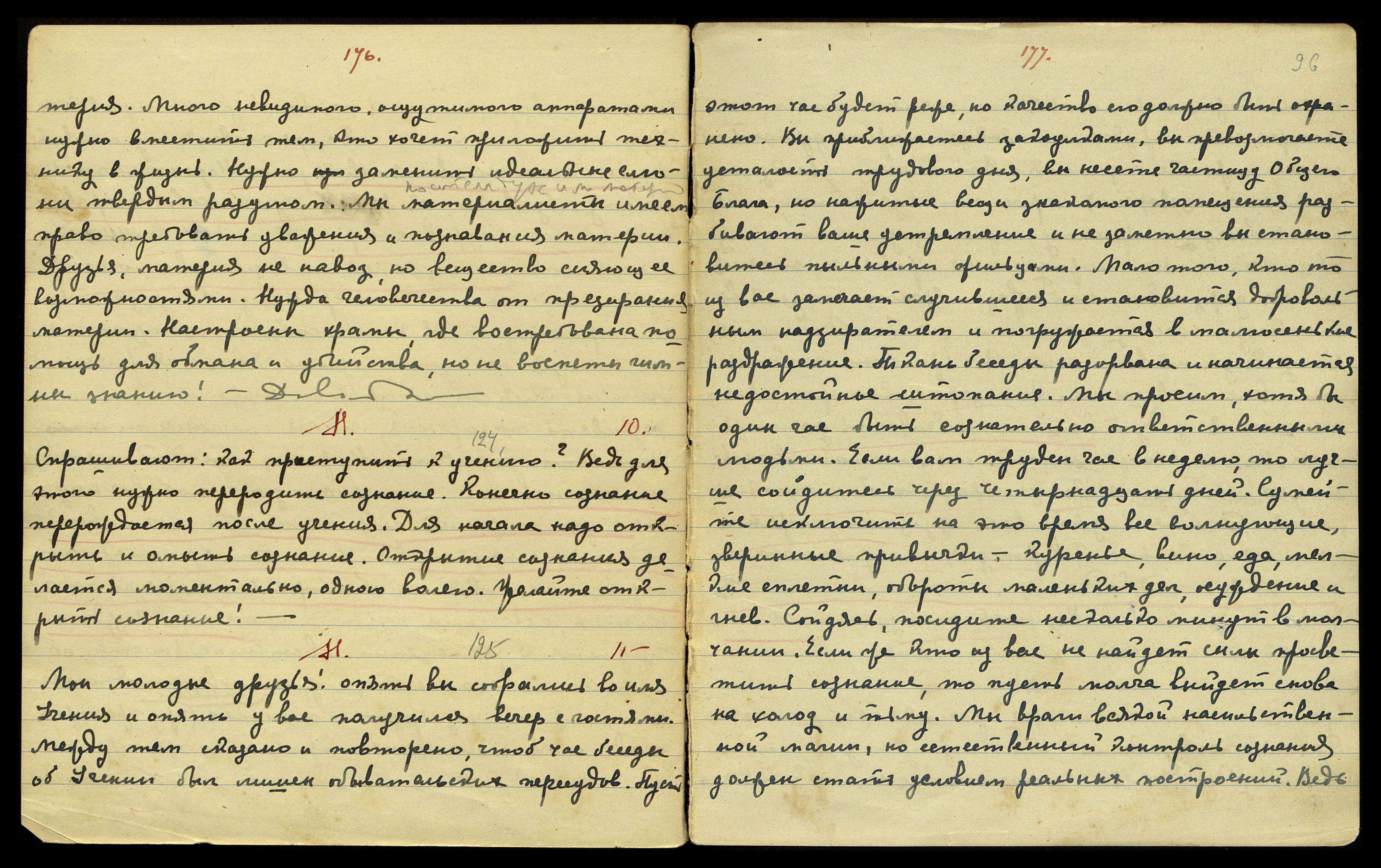 Мои молодые друзья! Опять вы собрались во имя Учения, и опять у вас получился вечер с гостями. Между тем сказано и повторено, чтобы час беседы об Учении был лишён обывательских пересудов. Пусть этот час будет реже, но качество его должно быть охранено. Вы приближаетесь закоулками, вы превозмогаете усталость трудового дня, вы несёте частицу Общего Блага, но нажитые вещи знакомого помещения разбивают ваше устремление, и незаметно вы становитесь пыльными жильцами. Мало того, кто из вас замечает случившееся и становится добровольным надзирателем, и погружается в малюсенькое раздражение. Ткань беседы разорвана и начинается недостойное штопанье. Мы просим, хотя бы один час быть сознательно ответственными людьми. Если вам труден час в неделю, то лучше сойдитесь через четырнадцать дней. Сумейте исключить на это время все волнующие, звериные привычки — курение, вино, еда, мелкие сплетни, обороты маленьких дел, осуждение и гнев. Сойдясь, посидите несколько минут в молчании. Если же кто из вас не найдёт силы просветить сознание, то пусть молча выйдет снова на холод и тьму. Мы враги всякой насильственной магии, но естественный контроль сознания должен стать условием реальных построений. Ведь