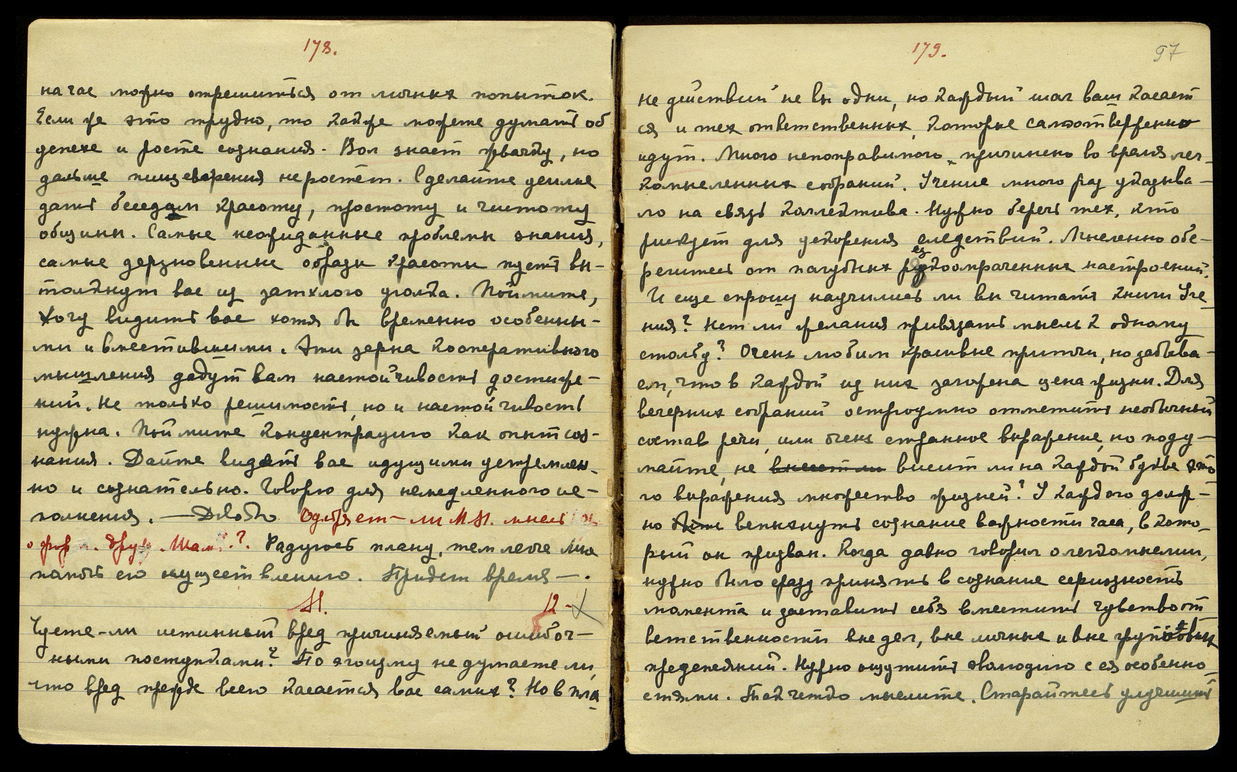 Теперь другое. Можно печатать дневник в январе 1928 г[ода]. Рука Моя окружает вас помощью. Учитель на этой неделе решит ваш путь.