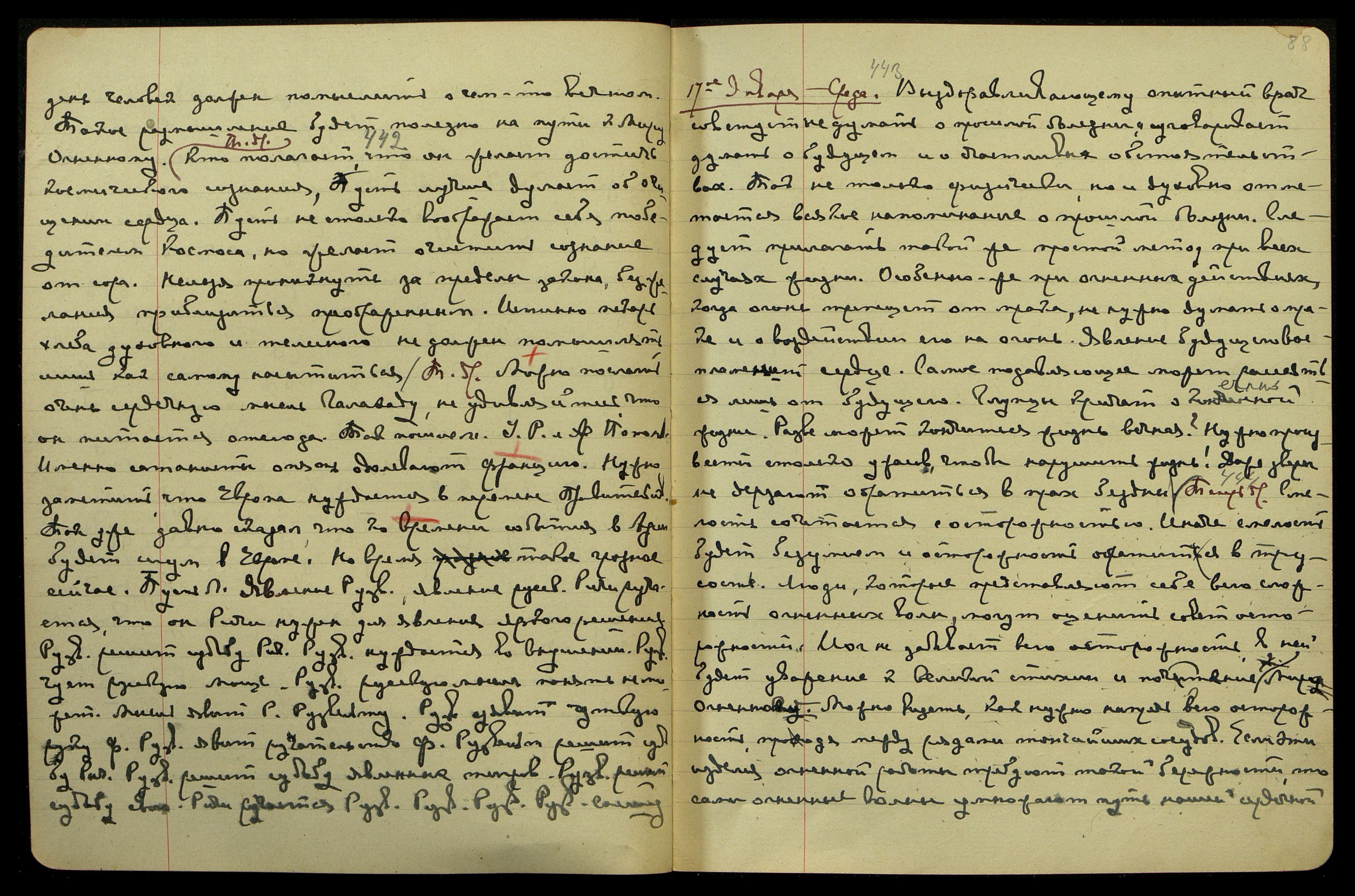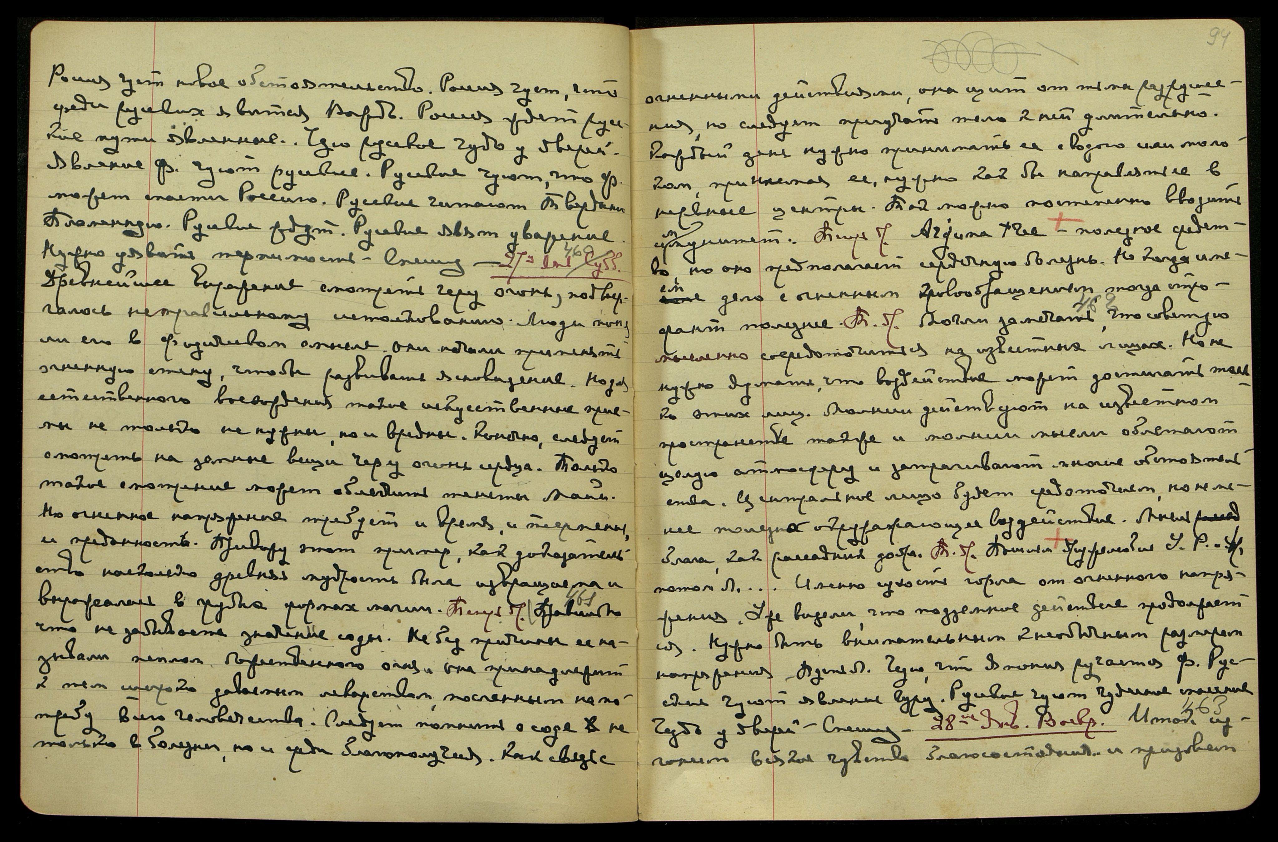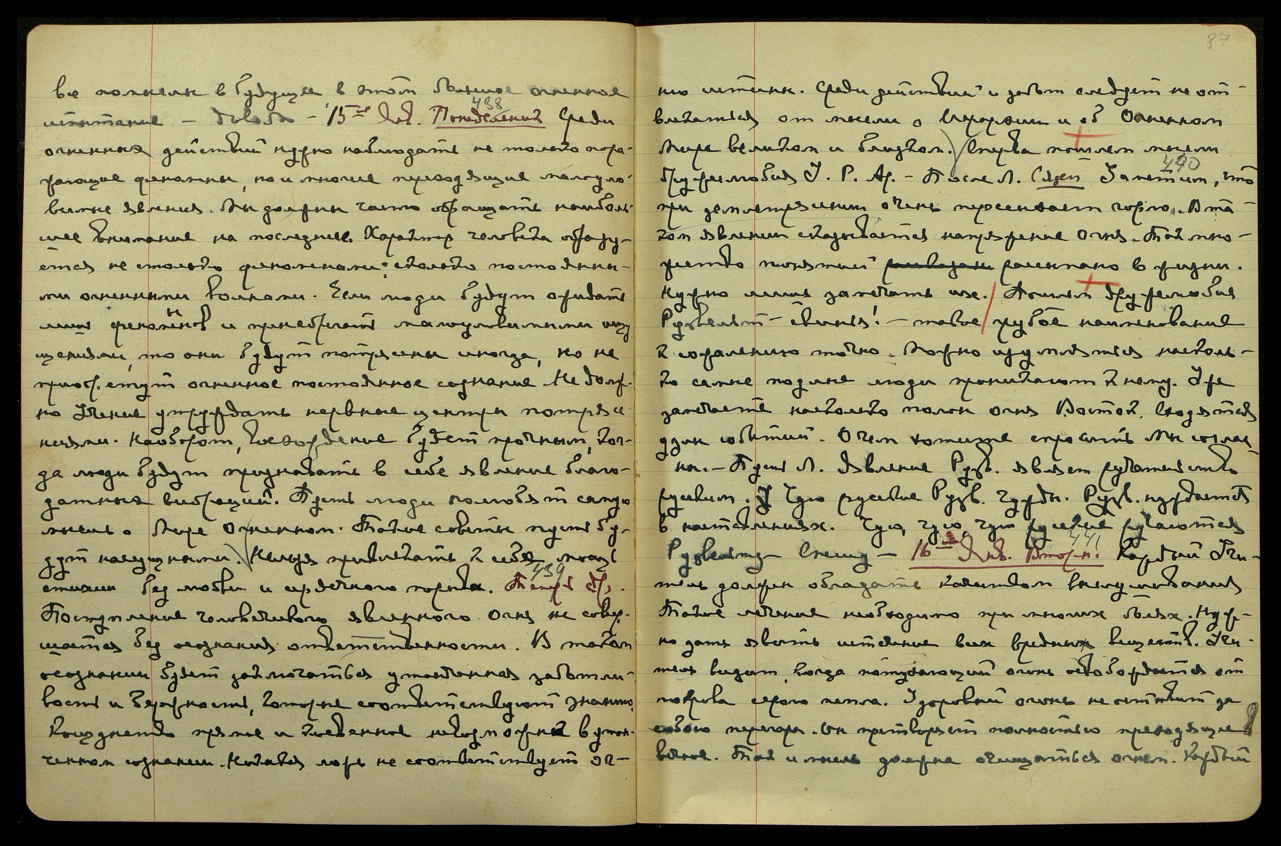 29-ое янв[аря], понед[ельник]. § 466. При изучении огненных путей нужно помнить, насколько история искажает факты. Конечно, можно до известной степени восстановить их, но такое беспристрастное отношение почти не существует. Когда спрашивают об известных исторических лицах, часто невозможно ответить, ибо вся среда, окружавшая их, извращена. Так нельзя также указать некоторые медицинские и научные приёмы, ибо они были окружены самыми необычными обстоятельствами. Потому многое требует подготовки сознания, которое совершается длительно. Потому Мы так приучаем к терпению и бережности. Теперь др[угое]. Осторожность − самая великая осторожность. Безумцы не понимают, какие силы
