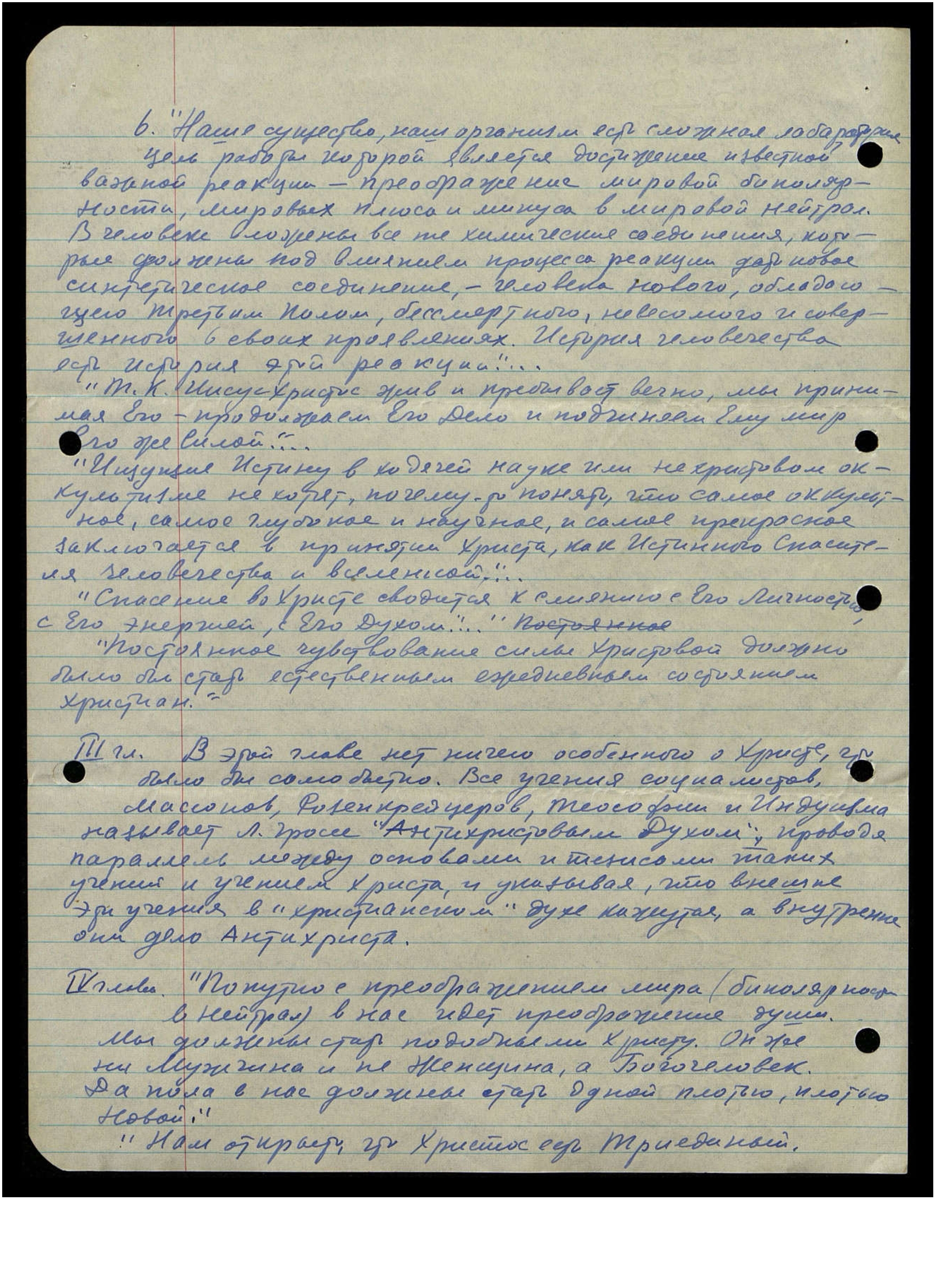 "Попутно с преображением мира (биполярности в нейтрал) в нас идет преображение души. Мы должны стать подобными Христу. Он же не Мужчина и не Женщина, а Богочеловек. Два пола в нас должны стать одной плотью, плотью Новой.