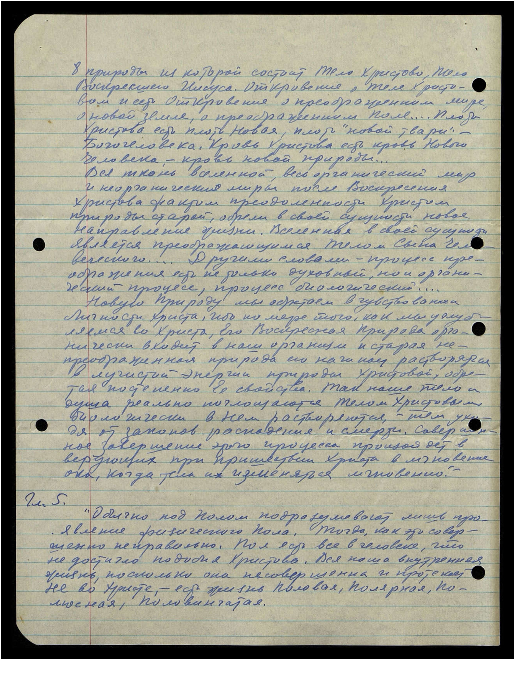 природы, из которой состоит Тело Христово, Тело воскресшего Иисуса. Откровение о Теле Христовом и есть Откровение о преображении мира, о новой земле, о преображенном Поле... Плоть Христова есть плоть Новая, плоть "новой твари" - Богочеловека. Кровь Христова есть Кровь Нового Человека, кровь новой природы...