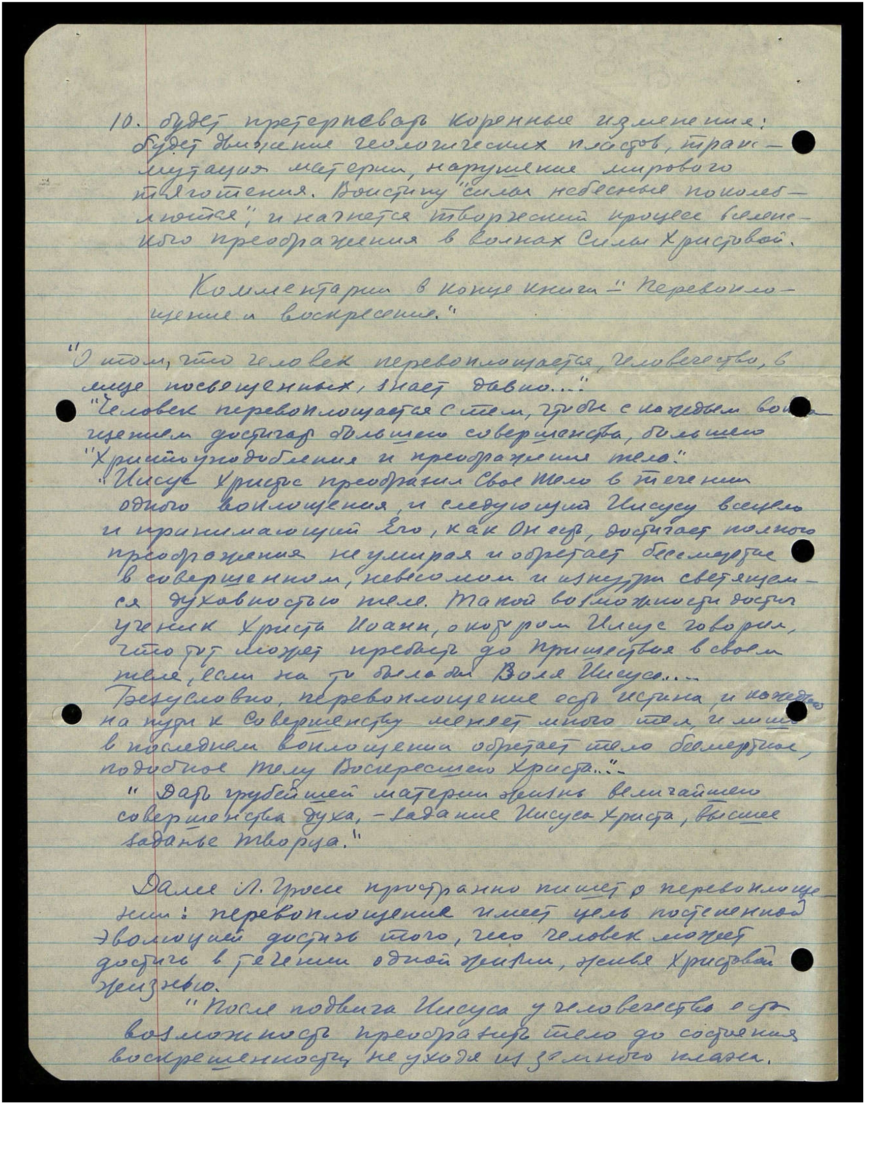 будет претерпевать коренные изменения - будет движение человеческих пластов, трансмутация материи, нарушение мирового тяготения. Воистину, сила небесная поколеблется, и начнется творческий процесс вселенского преображения в волнах Силы Христовой".