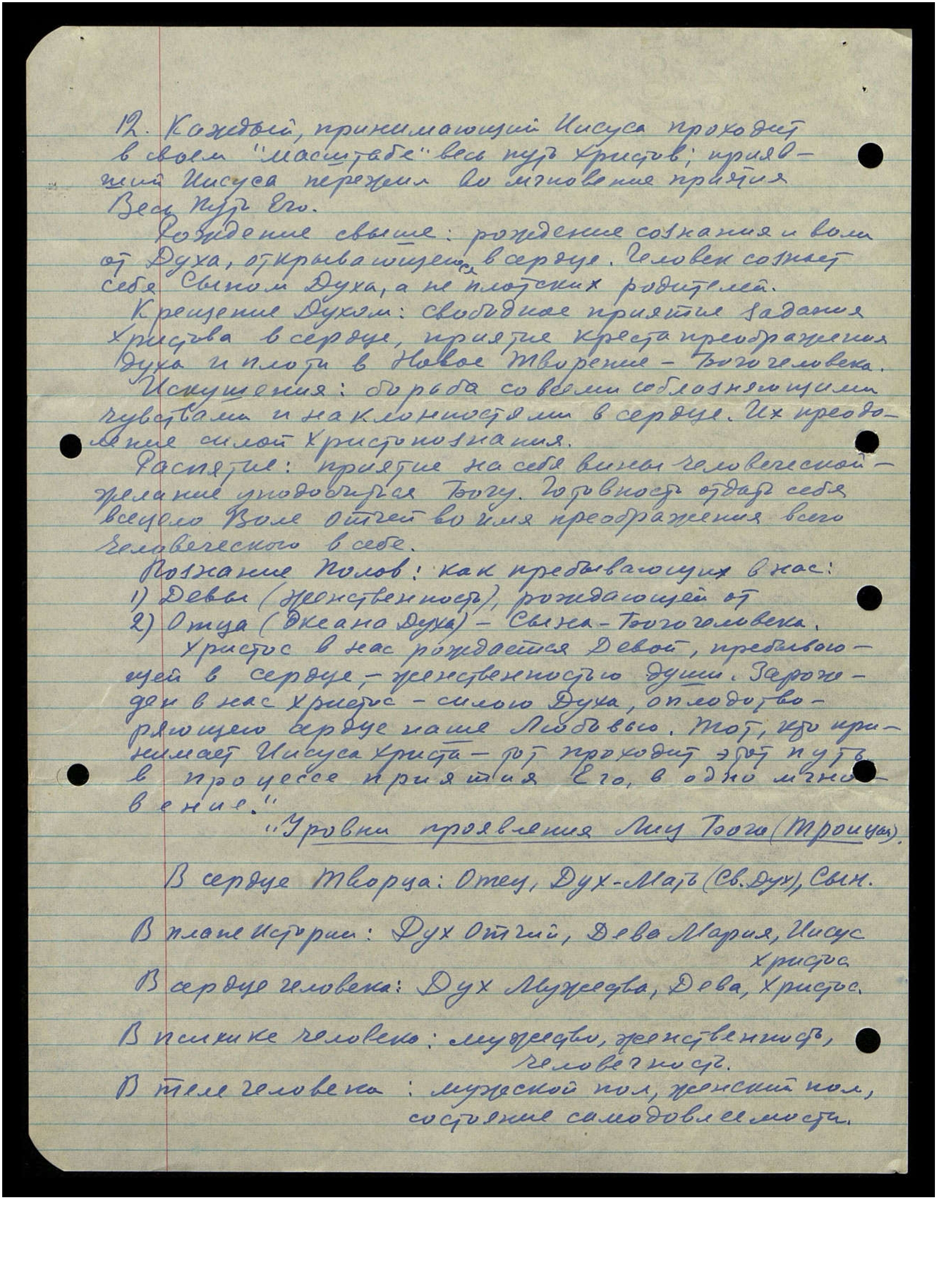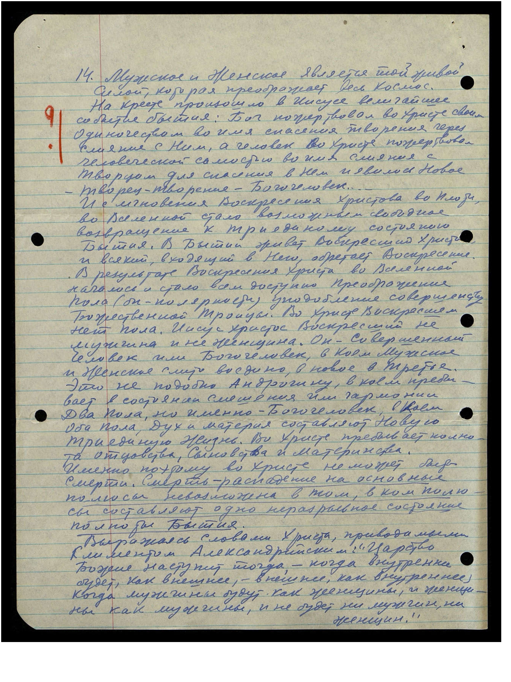 Современному человеку, пошлостью загрязнившему пол, очень трудно понять, что физический пол является, в сущности, физическим проявлением человеческого подобия Отца и Св. Духа - Матери в мире, проявлением, конечно, бесконечно грубым и односторонним, но всё же исходящим от Истоков Бытия".