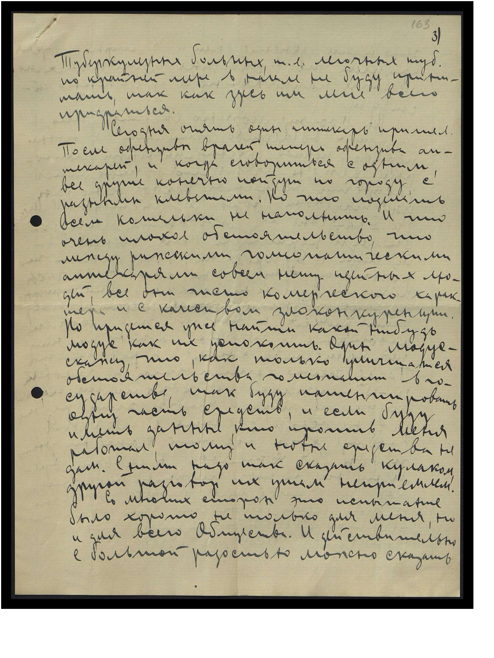 Туберкулёзных больных, т.е. лёгочных туб[еркулёзно], по крайней мере, вначале не буду принимать, так как здесь им легче всего придраться.