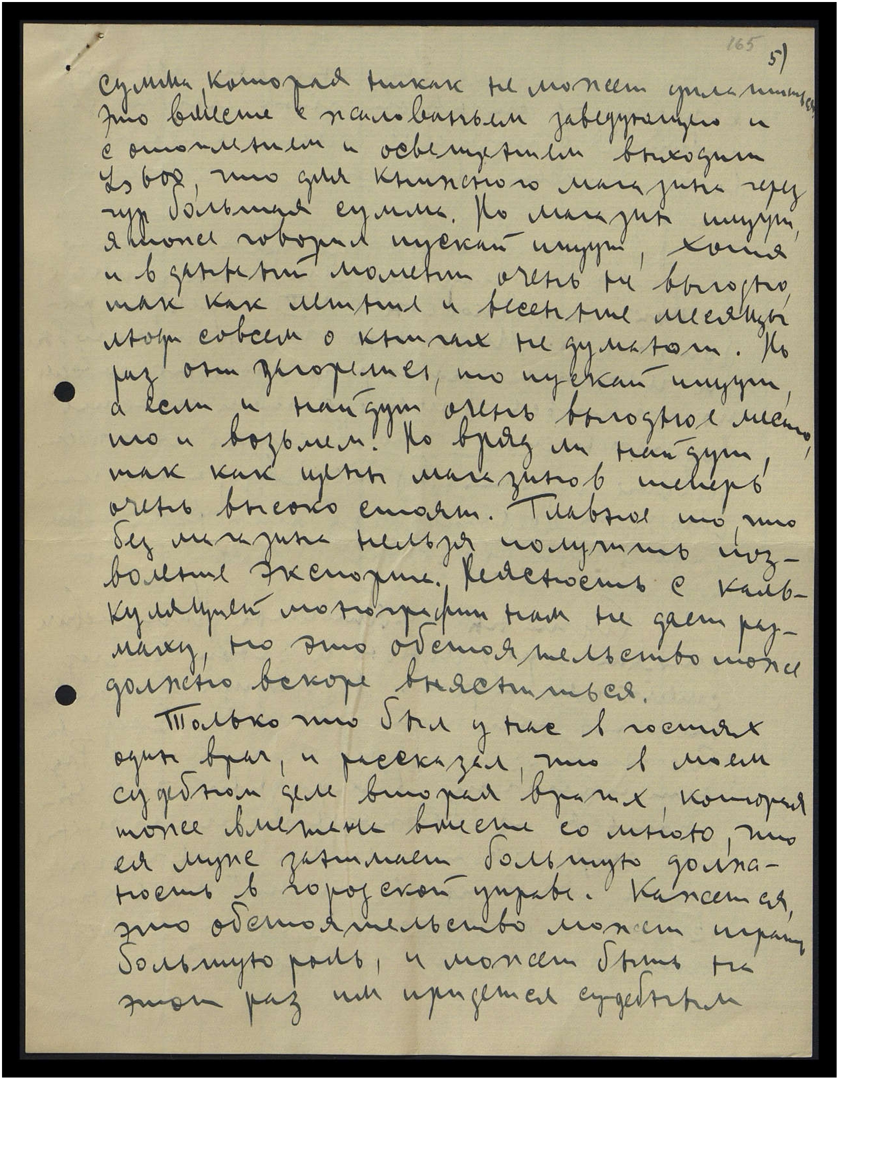 сумма, которая никак не может уплатиться. Это вместе с жалованьем заведующего и с отоплением, и освещением выходит Lt 600, что для книжного магазина черезчур большая сумма. Но магазин ищут, я тоже говорил, пускай ищут, хотя и в данный момент очень невыгодно, так как летние и весенние месяцы люди совсем о книгах не думают. Но раз они загорелись, то пускай ищут, а если и найдут очень выгодное место, то и возьмём. Но вряд ли найдут, так как цены магазинов теперь очень высоко стоят. Главное то, что без магазина нельзя получить позволения экспорта. Неясность с калькуляцией монографии нам не даёт размаху, но это обстоятельство тоже должно вскоре выясниться.
