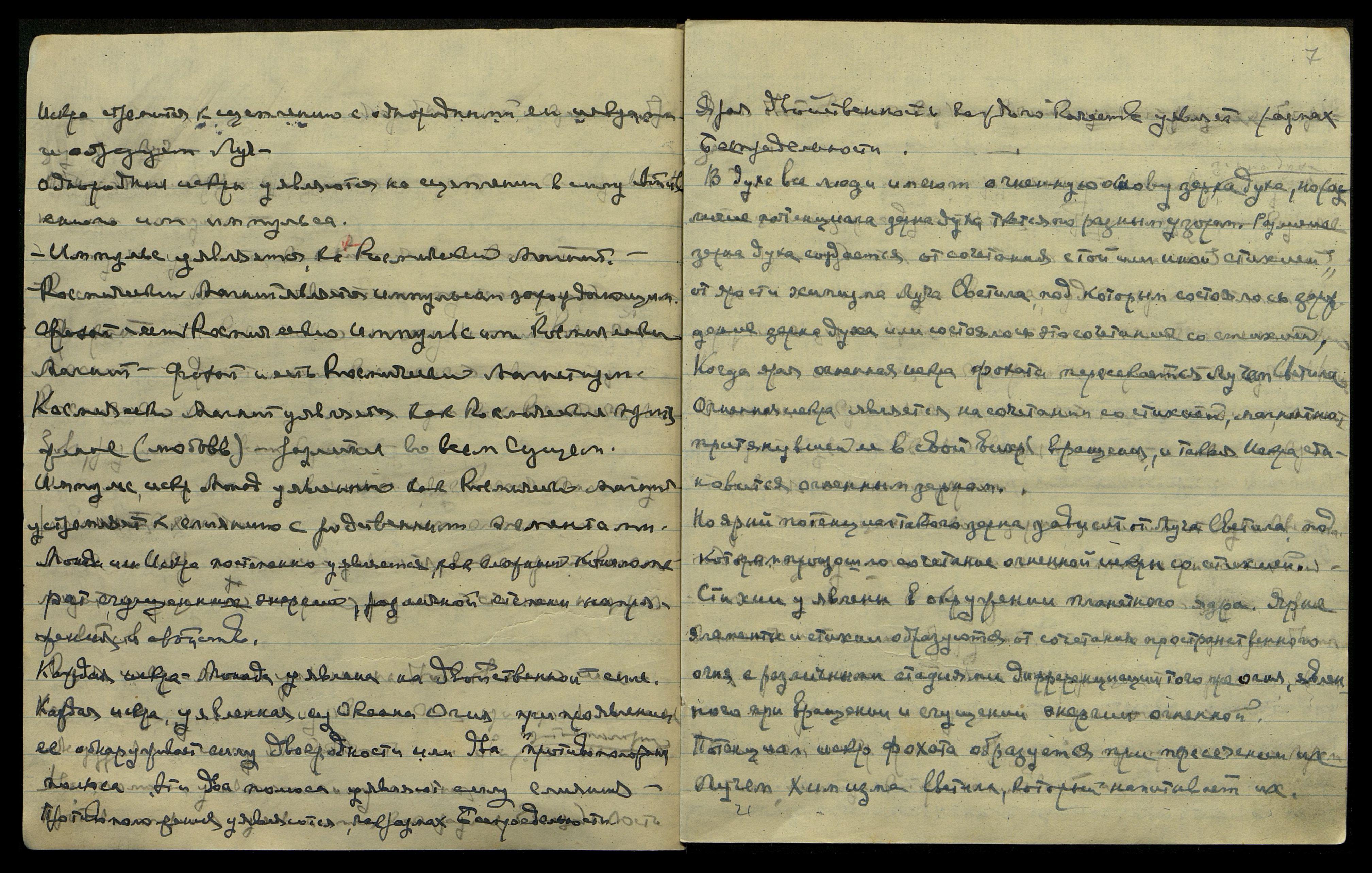 Единый Огонь лежит в основе космич[еских] искр. Но различный химизм светил наполняет их и уявляет потенциал Монад. Химизм, наполняющий Монаду, зависит от Светила, давшего зарождение Монаде, так же и от [состава] пространства, которое проходит Монада, стремящаяся к сцеплению с однородным элементом. Огонь, дух, магнит оявлены, как одна сущность, одна основа Бытия.