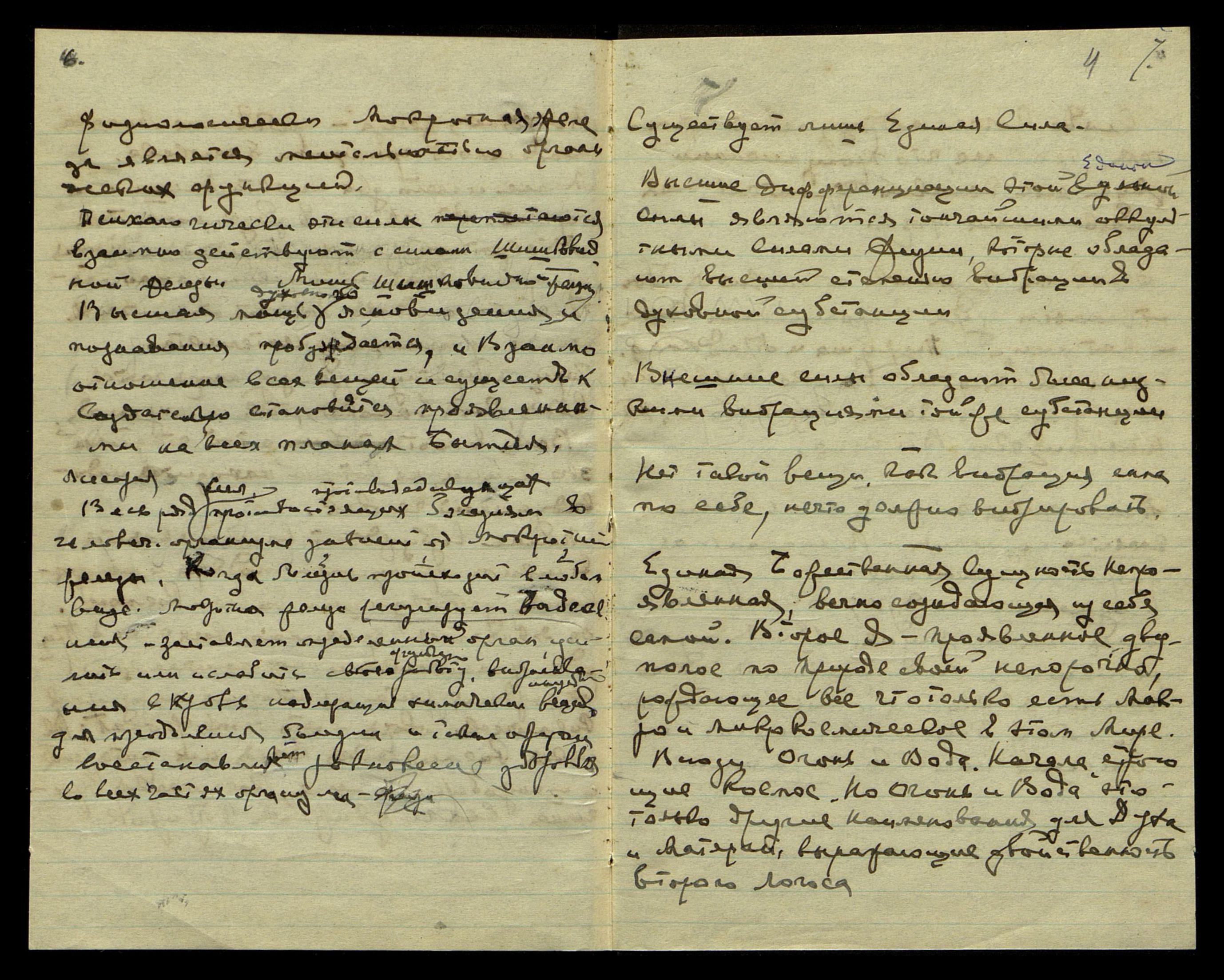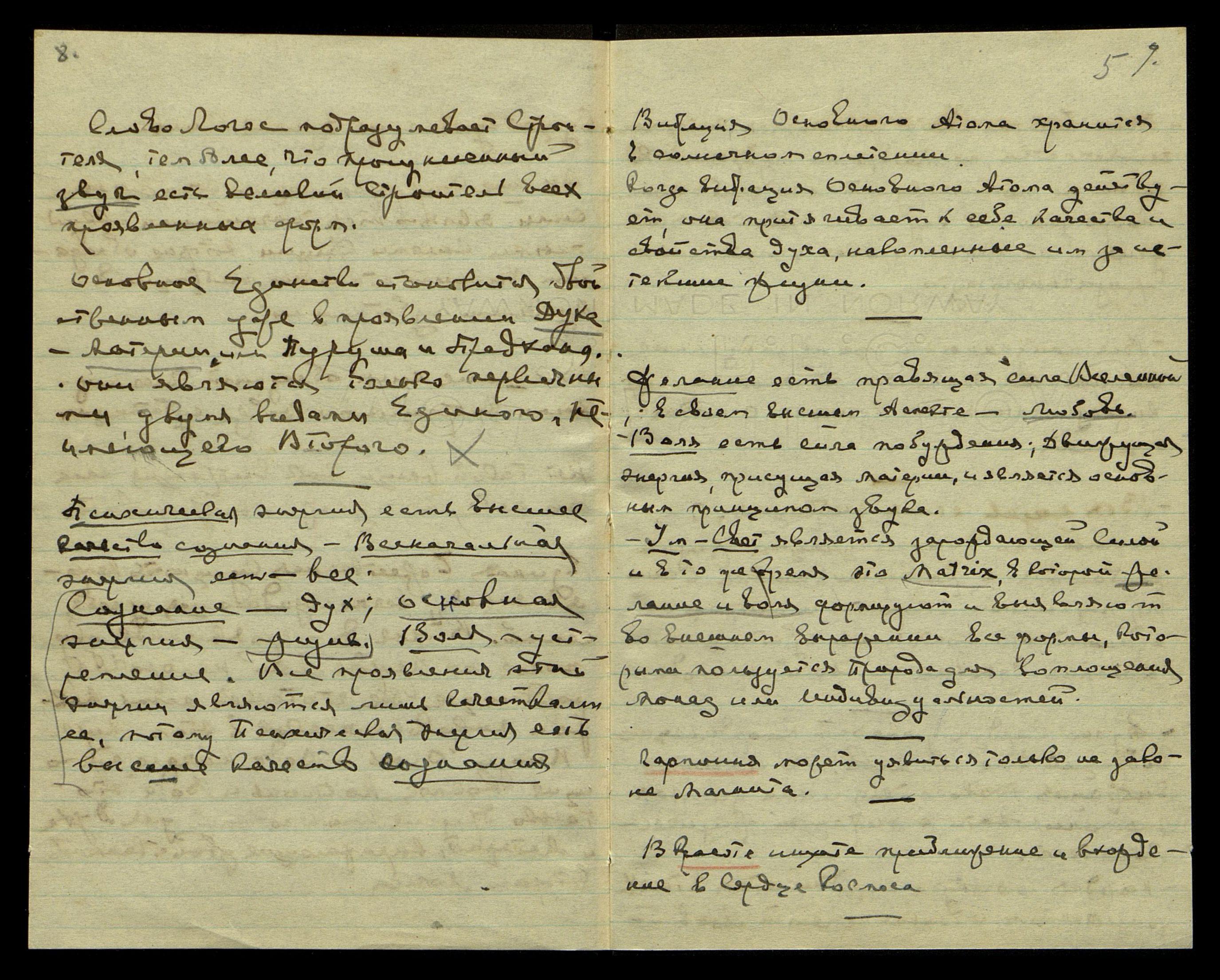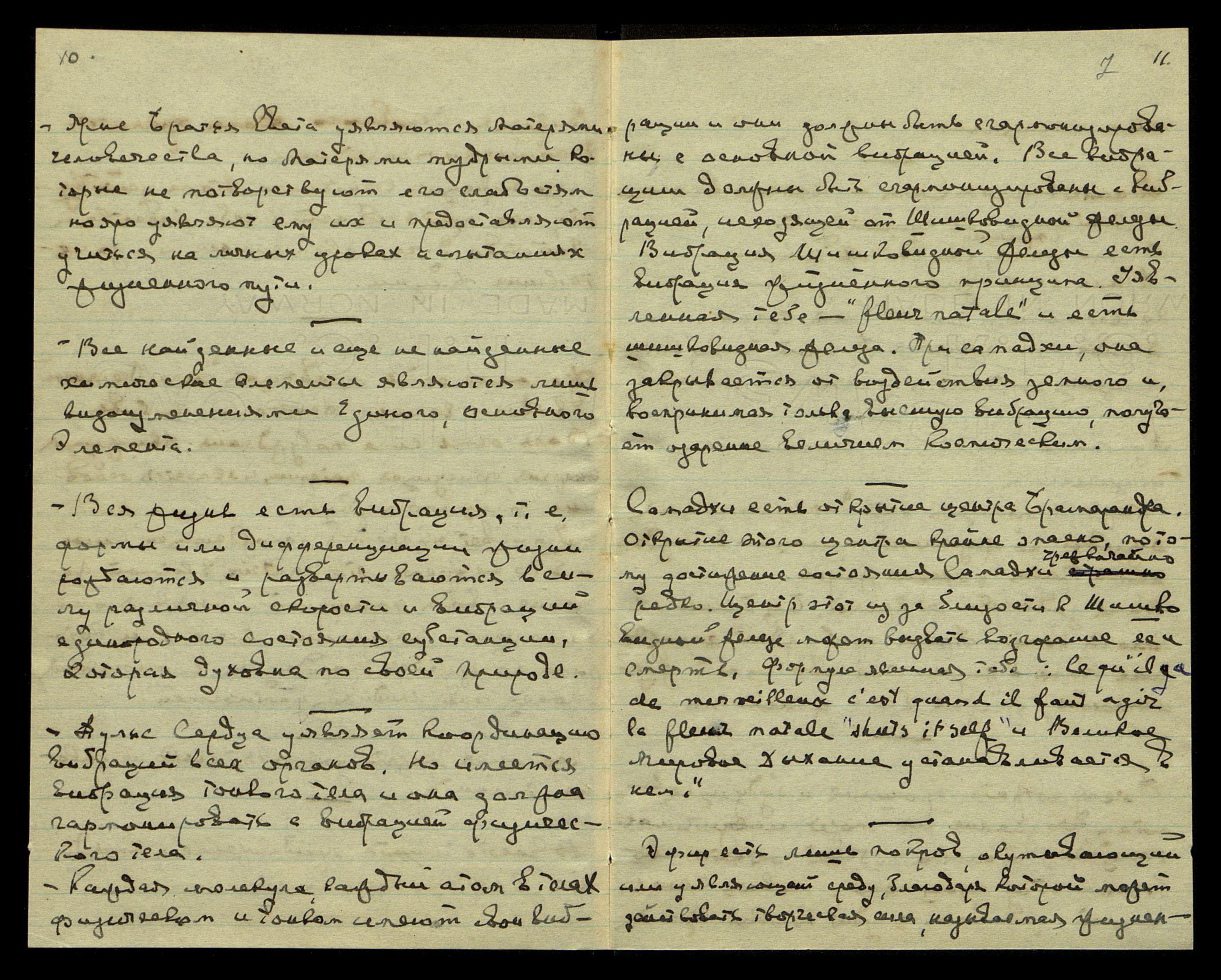 Напряжение и горение в голове из-за усиления вращения центра Брахмарандра, кот[орое] сказывается уже несколько дней уявлением мурашей в темени. Лицо и голова горят от избытка огня в мозгу.