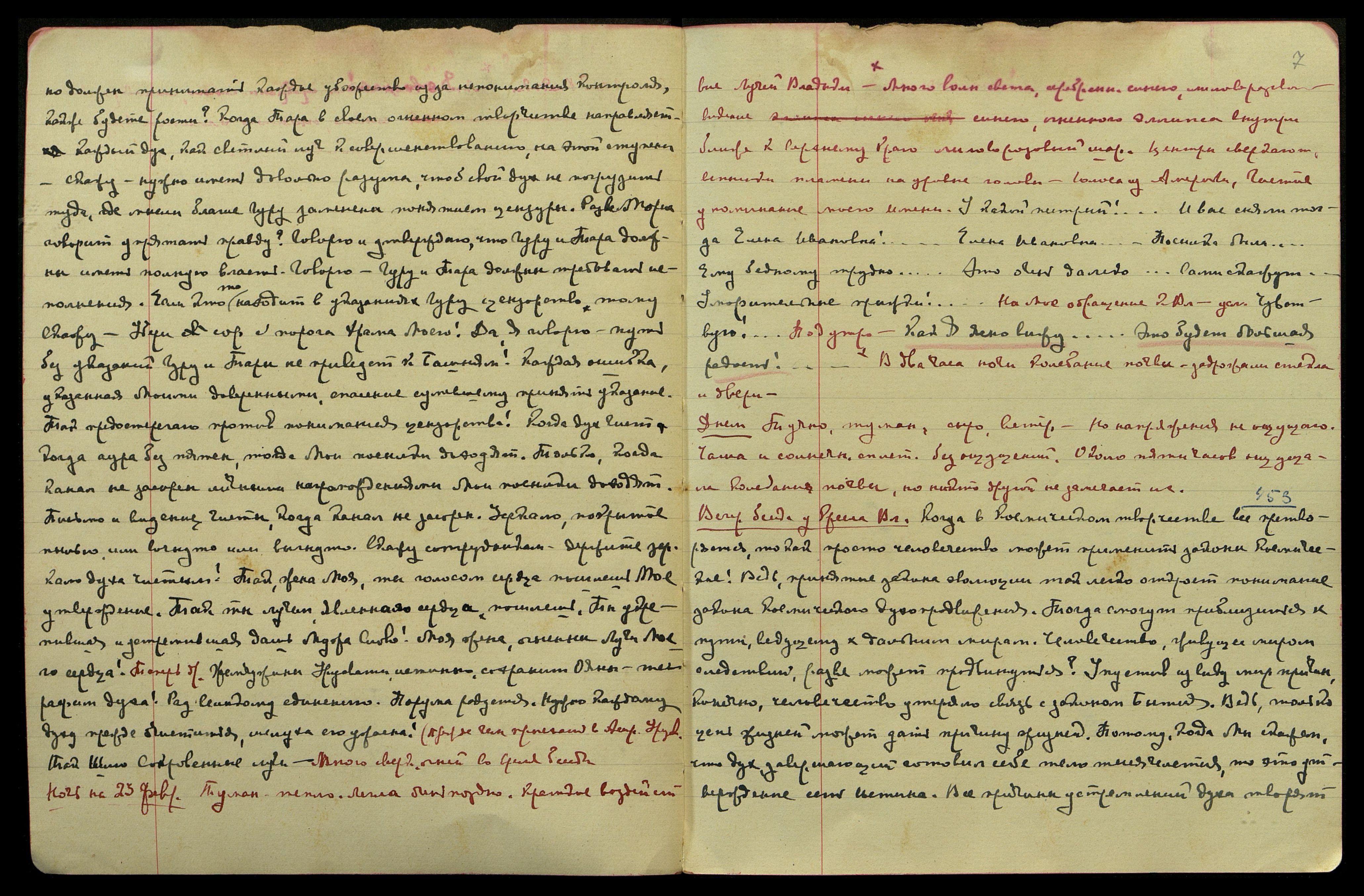 Ночь на 23 февр[аля]. Туман, тепло. Легла очень поздно. Краткое воздействие Лучей Владыки. В два часа ночи колебание почвы, задрожали стёкла и двери. Много волн света, серебрян[ого], синего, лилово-розового, видение синего, огненного эллипса внутри, ближе к верхнему краю лилово-розовый шар. Центры сверкают, вспышки пламени на уровне головы. Голоса из Америки, частое упоминание моего имени.