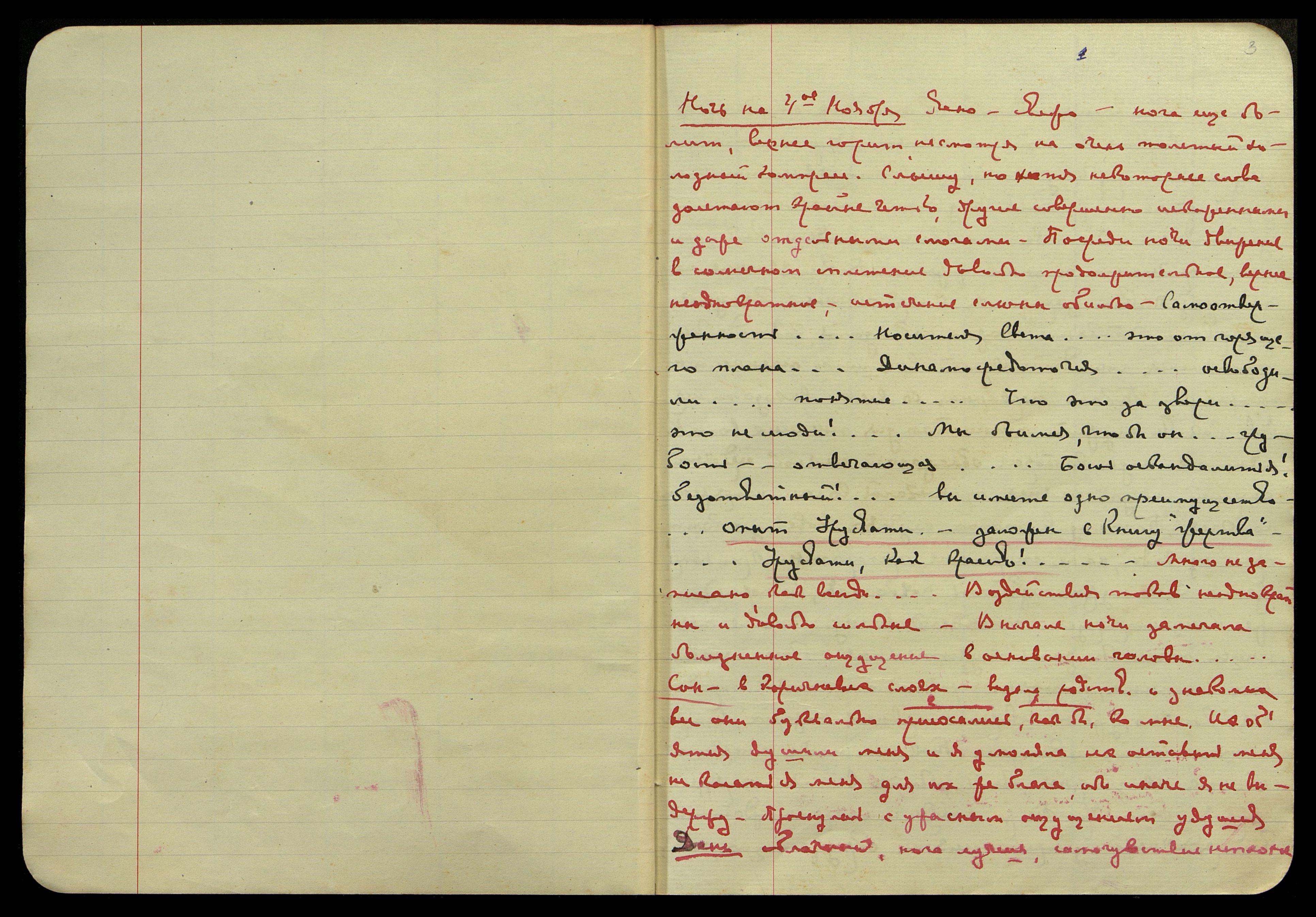 Ночь на 10-е ноября. Луна почти полная, свежо, ясно, с вечера хотелось спать, но когда легла, сон ушел. "У меня итог твоего наследия... Ты летишь... ты просветишь..." Видение Н.К., стоящего в большой задумчивости, морщины на лбу... Вспышки красного света, и мой голос говорящий: "Папочка, папочка, какая неприятность!" Видение огня-пламени размера свечи внутри головы, но в тоже время над головой... Просыпалась все время в представлении вставала Мадам де Voux, ее голос: "Quelle mine! [фр.: Что за мина!]" или "L’est une mine [фр.: Это шахта!]"