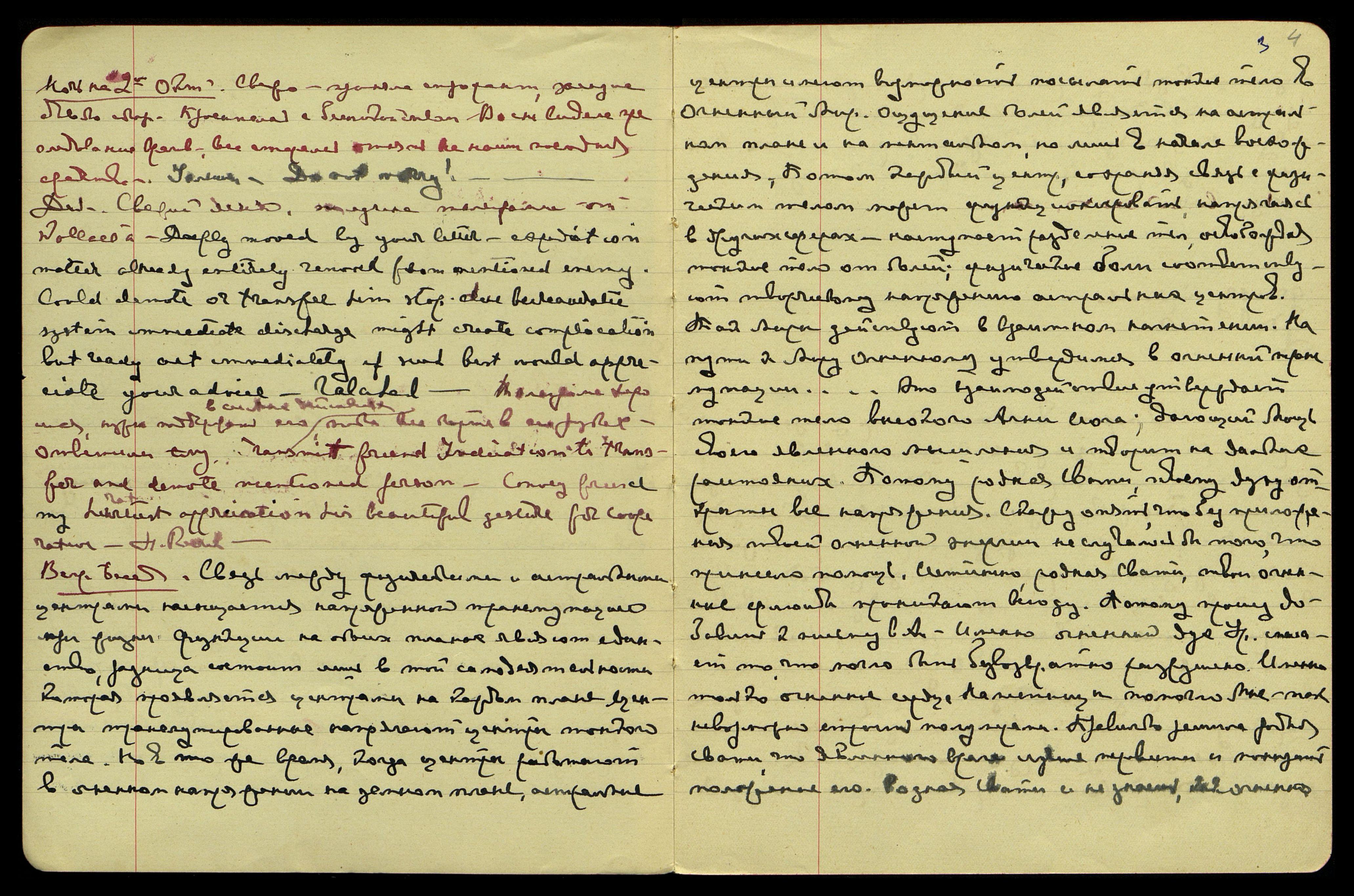 Ночь на 2-е октября. Свежо, приняла строфант, заснула довольно скоро. Проснулась с беспокойством. Во сне видела преследование врагов, всё старался отнять все наши последние средства. Услышала: "Do not worry! [англ.: Не волнуйся!]"