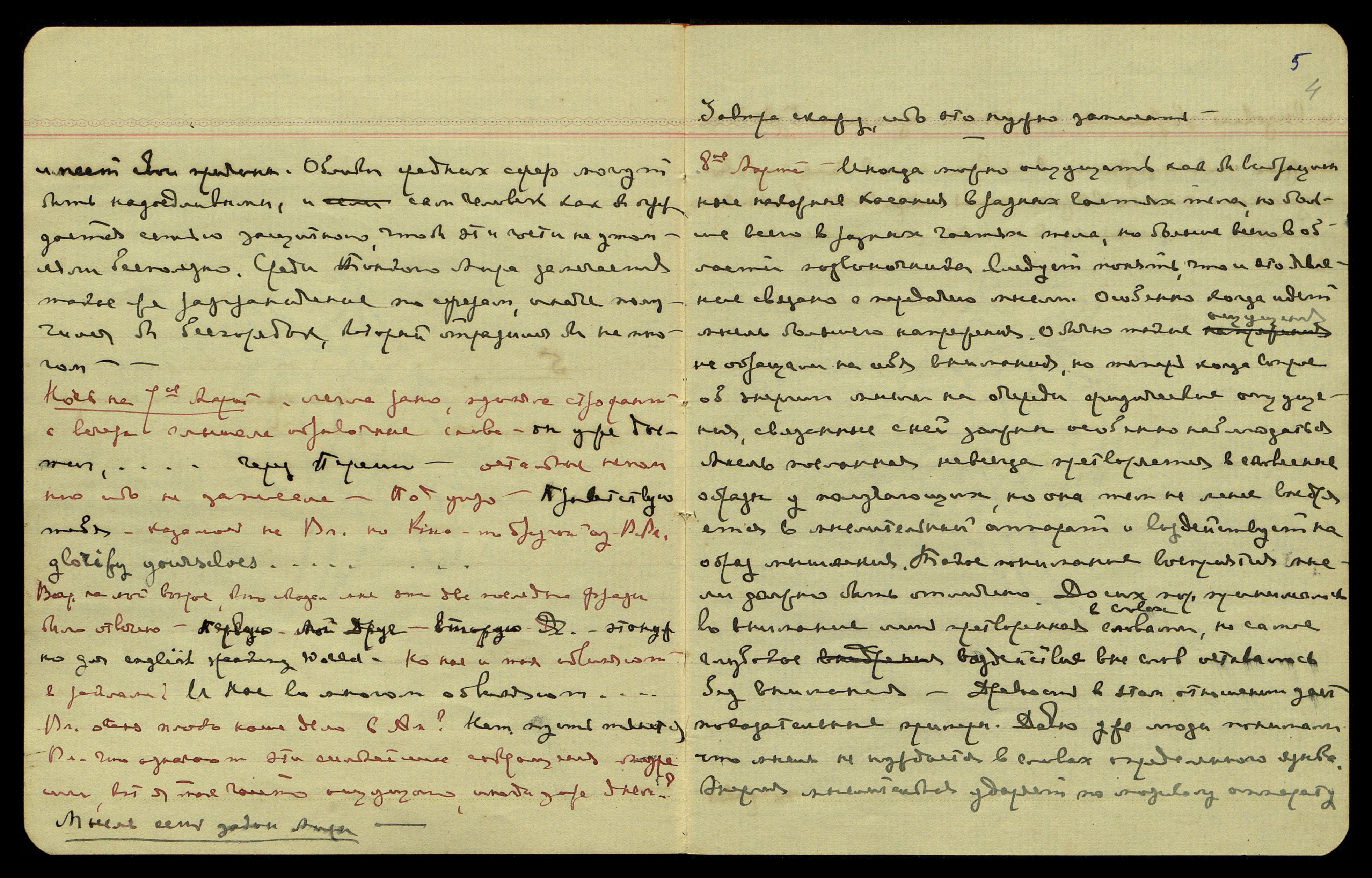 Ночь на 7-ое марта. Легла рано, приняла строфант, с вечера слышала отрывочные слова: "Он уже достиг, ...через Персию", — остальные не помню, ибо не записала. Под утро: "Приветствую тебя", — казалось, не Вл[адыка], но кто-то другой из В[еликих] Вл[адык]. "Glorify yourselves [англ.:славьтесь]..."