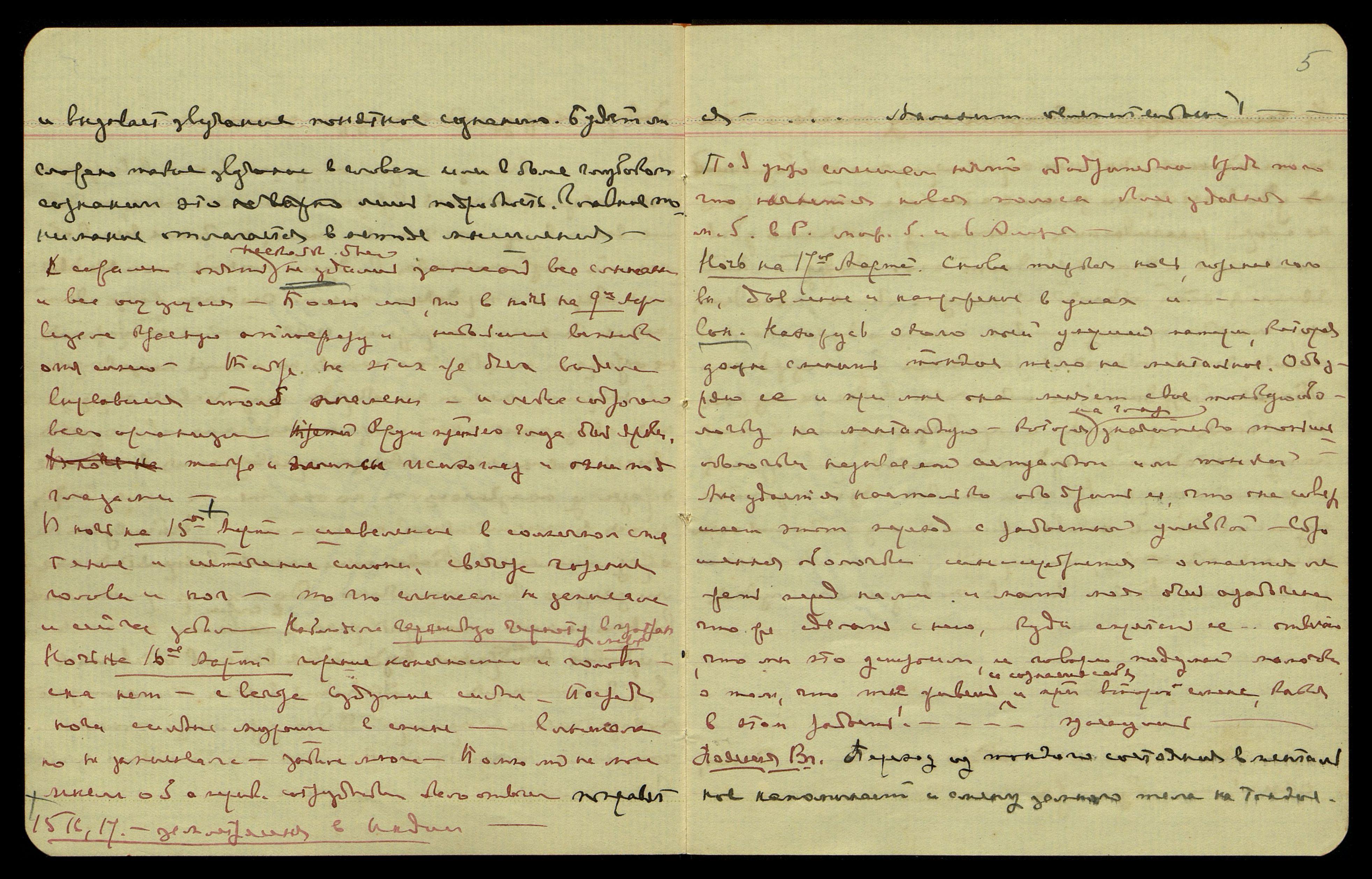 Ночь на 16-ое марта. Горение конечностей и головы, сна нет, с вечера вздутие сильное. Посреди ночи сильные мураши в спине. Слышала, но не записывала — забыла многое. Помню лишь, на мои мысли об америк[анских] сотрудниках было отвечено: "Поправятся... Малахит ослепительный!"
