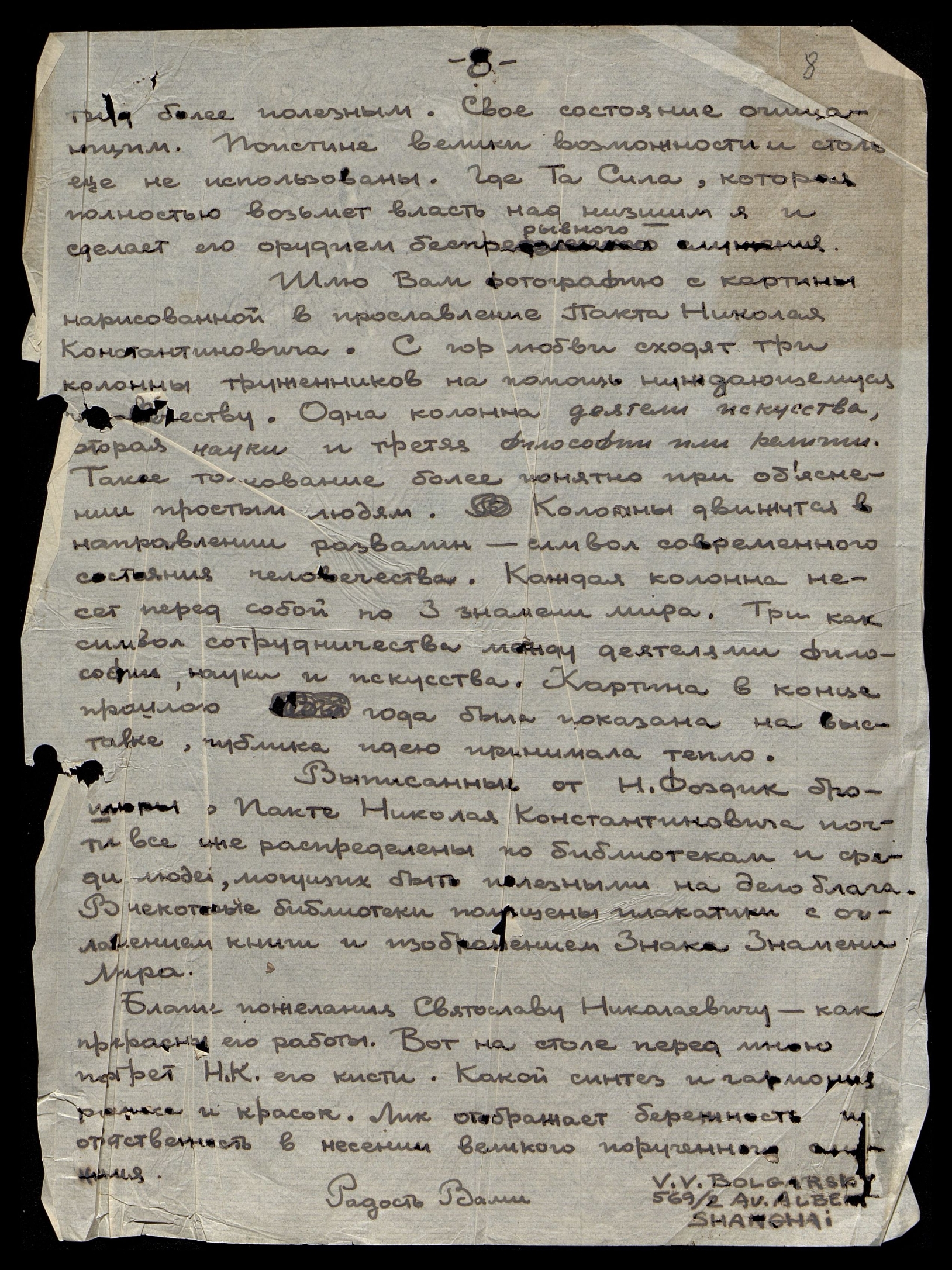 Письма В.В. Болгарского (Китай) к Е.И. Рерих