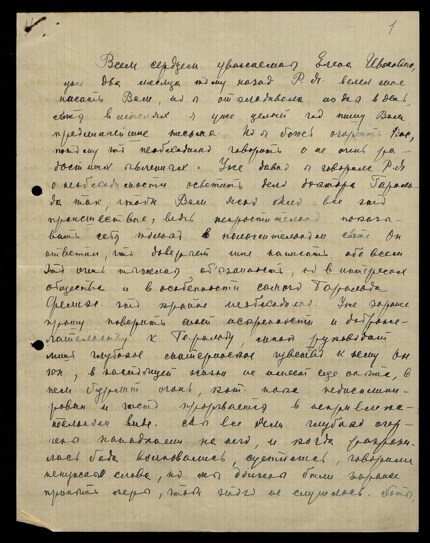 От всей души мне жаль, что мое первое письмо к Вам доставит Вам, может быть, огорчение, но моё глубокое убеждение было то, что Вы должны всё знать. Ведь дело Гаральда Феликсовича не только его дело, его имя тесно связано с обществом. Должна еще писать о деятельности женской секции, но это позже, потому что настоящее письмо вышло очень длинным.