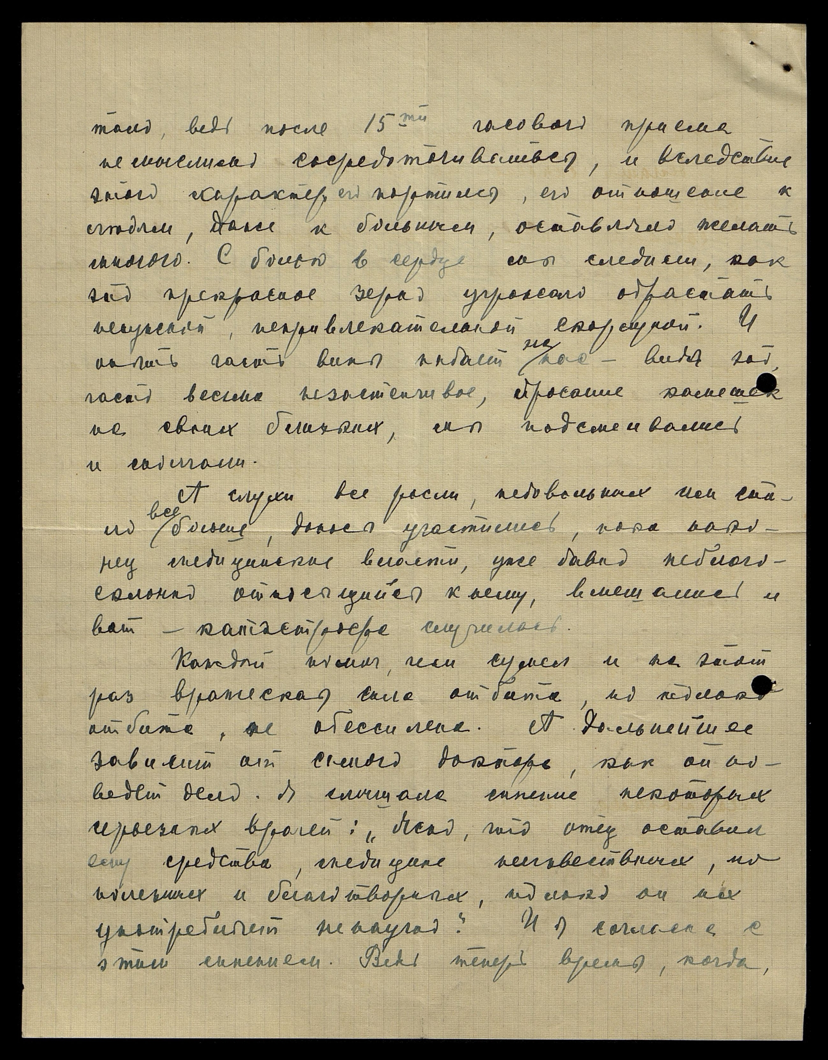 Но есть ученые (не "ученые" в кавычках, как это утверждал доктор В. [одно слово неразборчиво], имена которых знакомы всему научному миру, например, индийского Джаг[диш Чандра] Боше, французского врача доктора Лаховского и др.) которые, признавая божественную сущность вещей и явлений, ищут причинность и внутреннее родство всего существующего. К этим пионерам науки принадлежал и покойный доктор Лукин. Меня заинтересовал его метод и я просила пояснить его. И он развил целую теорию, которая при более глубоком понимании вещей не менее научна, чем существующие медицинские теории.