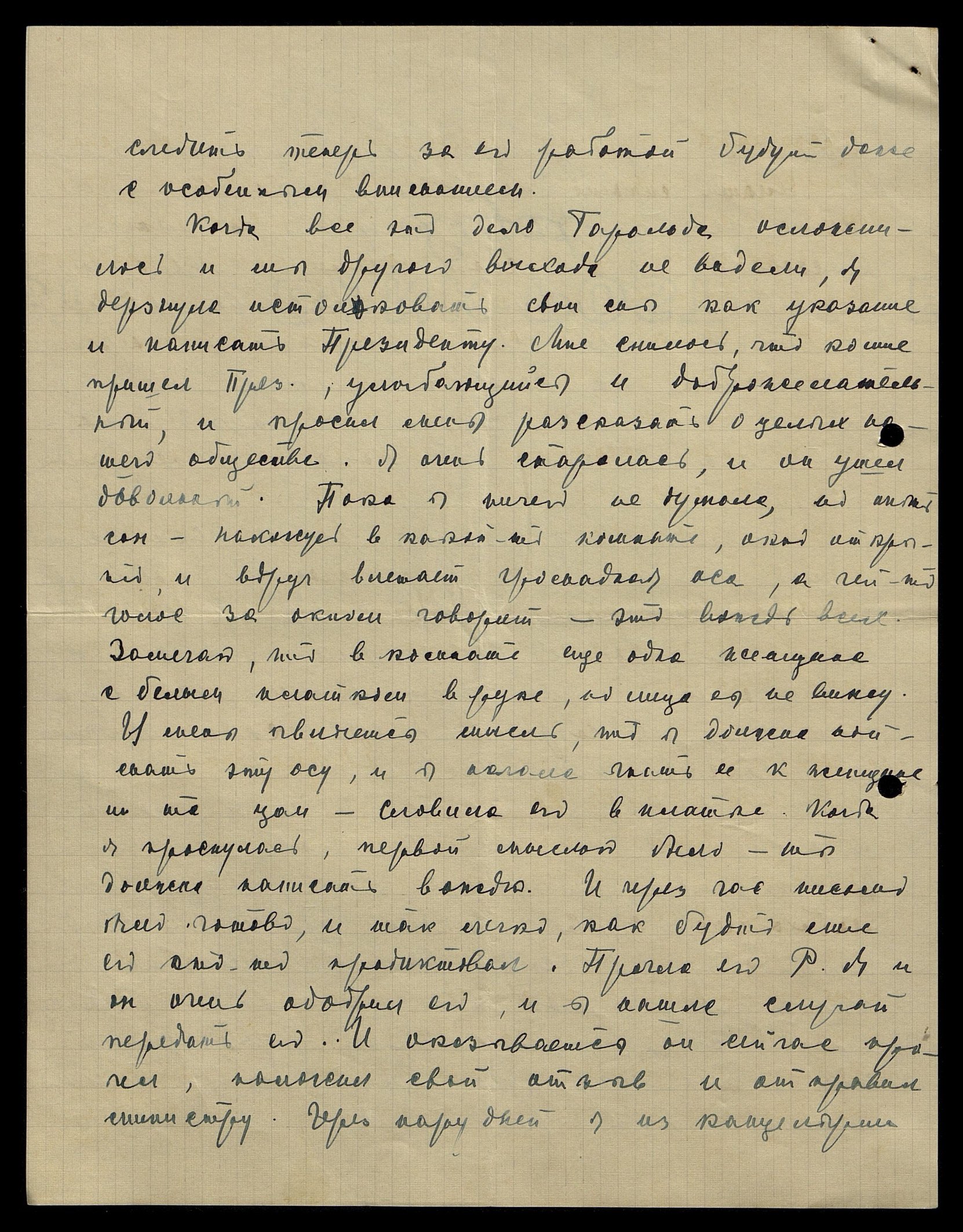 Президента получила извещение, что делу дан ход. Прилагаю письмо, и Вы поймете, как теперь важно для Гаральда Феликсовича [Лукина] быть предусмотрительным и достоверным. И я знаю, глубоко уважаемая Елена Ивановна, что Ваша глубокая чуткость найдет самые надежные и нужные слова, и самый лучший совет.